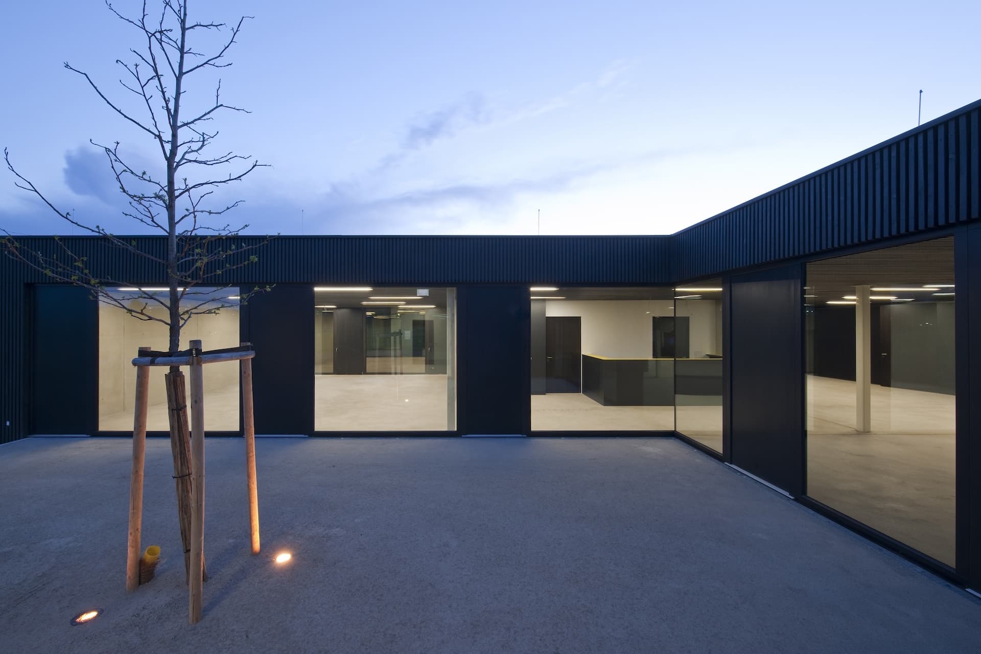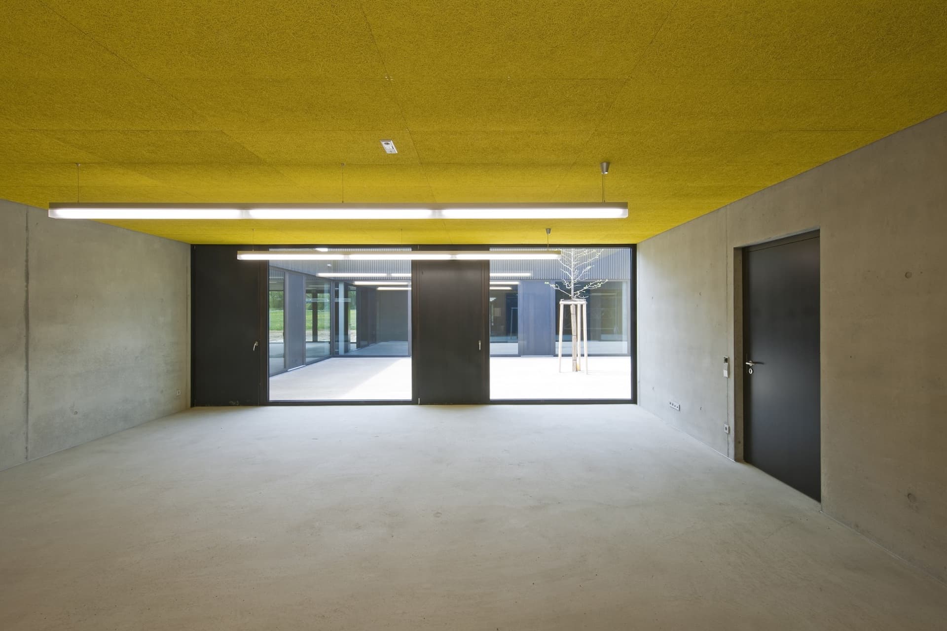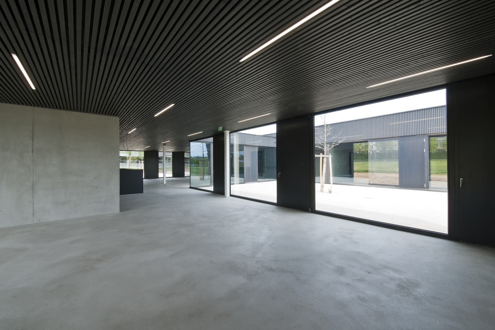 After the competition decision, the office was commissioned in stages with the architectural services for work phases 1-4 and later with work phases 5-8, following fee negotiations.In the course of the design planning, different utilization variants were examined. The realization then took place on the basis of the competition draft with revised workshop wing. The costs for cost groups 300-700 were set at €2.5 million on the basis of the architects’ cost estimate. Due to the tense economic situation, the realization was initially postponed and later approved by the Bietigheim municipal council with a reduced budget of € 2.3 million. After presentation of the construction decision, the work was put out to tender from December 2010. Construction began in March 2011. The materiality already specified in the competition design was implemented exactly. The fair-faced concrete walls were constructed with framed formwork. For this purpose, all dimensions had been coordinated in advance with the formwork system of the shell construction company. The opening sashes of the dark glazed wooden windows were designed as closed panels. Due to the resulting reduction in glass area, it was possible to dispense with external sun protection. The user welcomed the wooden façade, which also has a dark glaze, because it is inexpensive to build and unattractive to graffiti sprayers. The reduction of materials in the interior underlines the workshop character of the building, which is very well accepted by the user. The settlement of the cost groups 300-700 took place exactly in the given framework. On the occasion of the award procedure “Beispielhaftes Bauen im Landkreis Ludwigsburg 2006-2013” the building received an award.